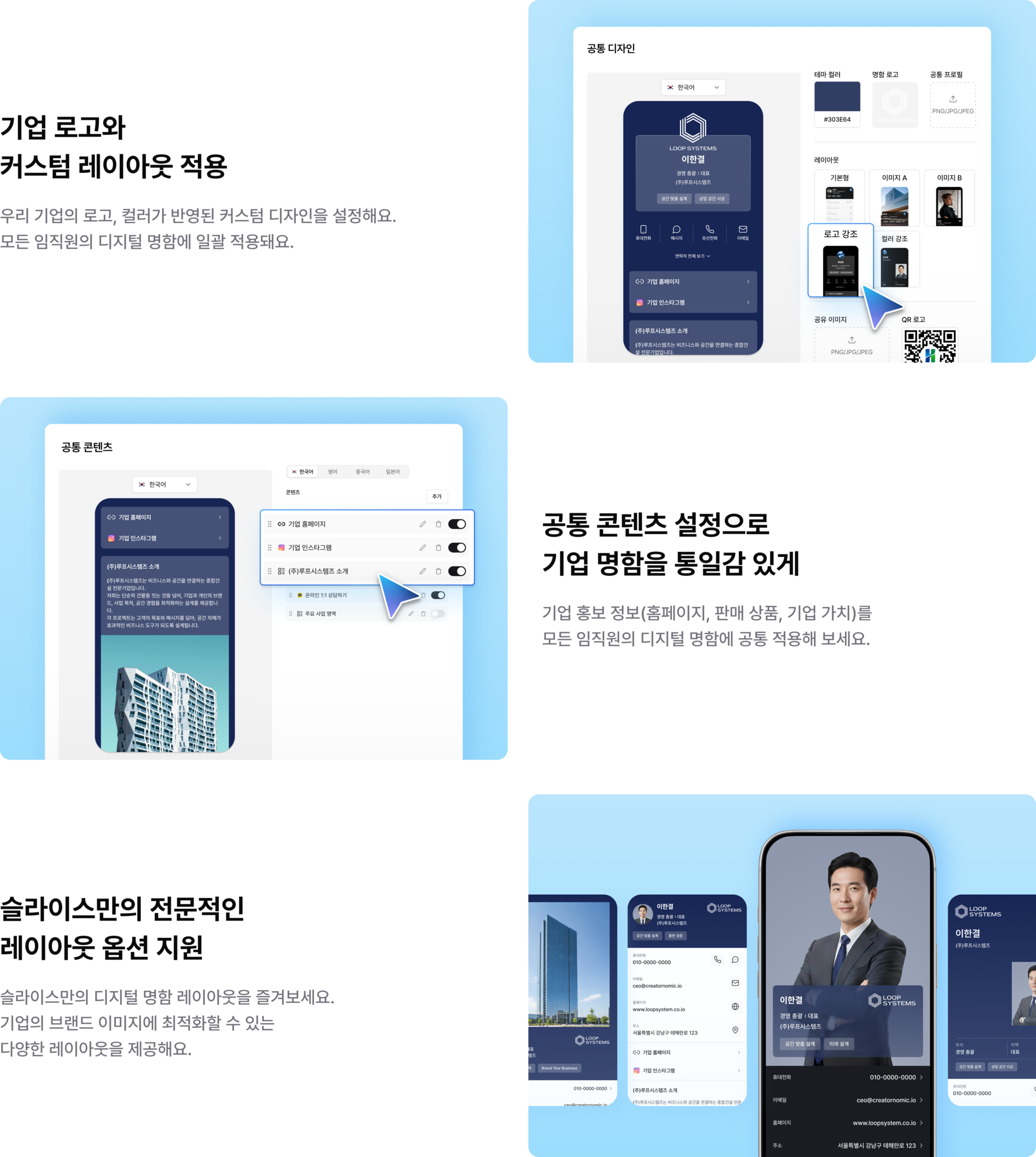 로고, 테마, 레이아웃, 기업용 정보 전달까지슬라이스는 기업을 브랜드로 표현하도록 지원합니다.